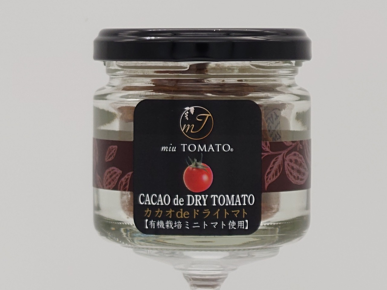 原材料:有機ミニトマト(愛知県産)、有機カカオ(ペルー産)、シロップ飯田農園自慢のmiuトマトをドライ加工した逸品です。